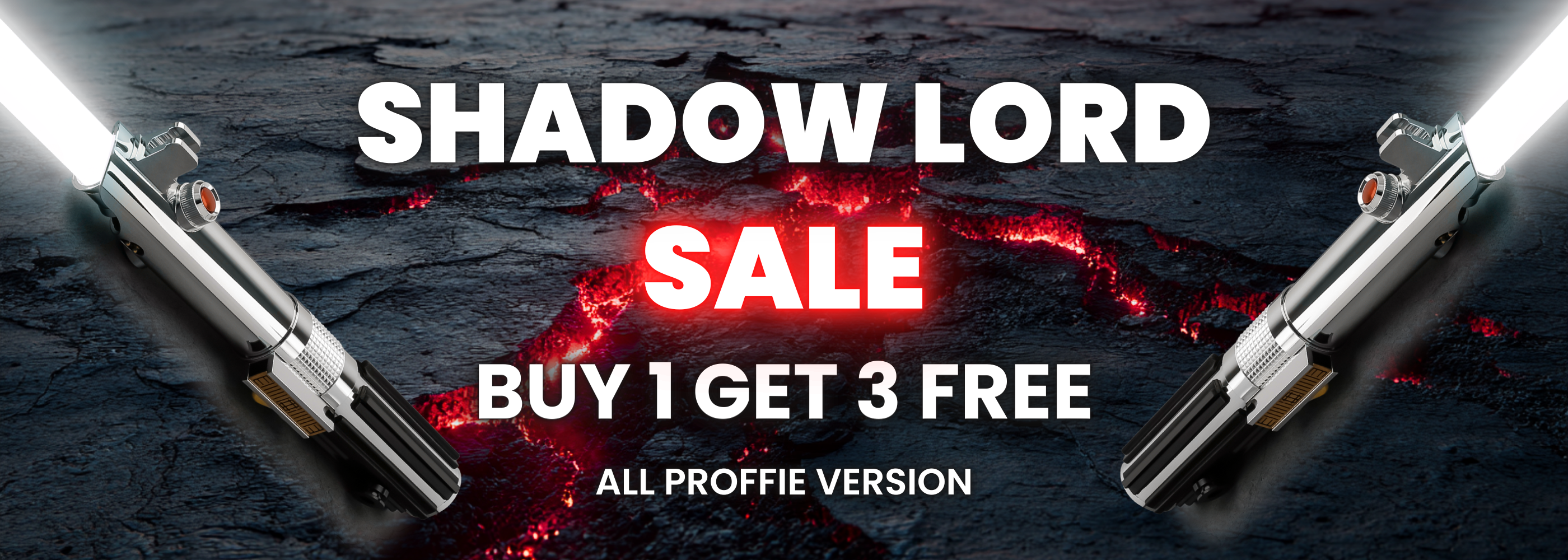 Purchase a Proffie saber and receive three FREE sabers, plus a premium suitcase and display stand worthy of a true Shadow Lord.